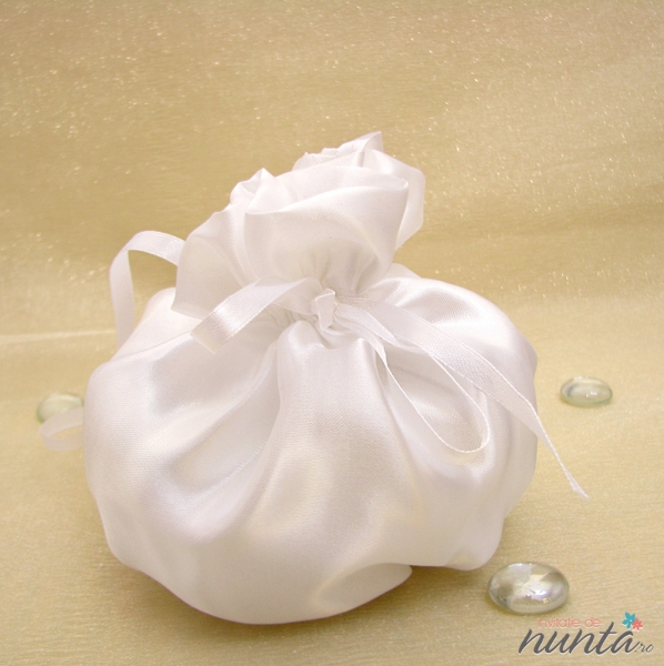 Poseta delicata de mireasa, realizata din satin si decorata cu panglici satinate de culoare alba.