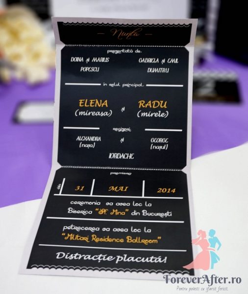 Invitatia poate fi personalizata in functie de tematica si cromatica nuntii.