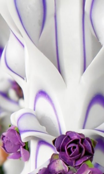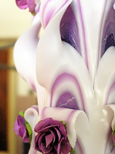 Lumanare mov, sculptata in partea superioara, care nu necesita aranjament floral.