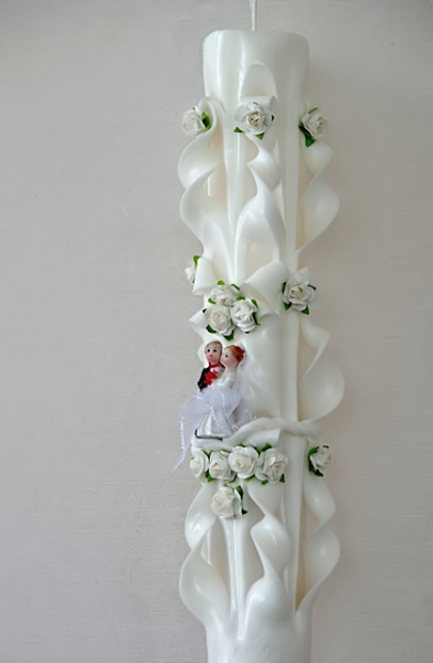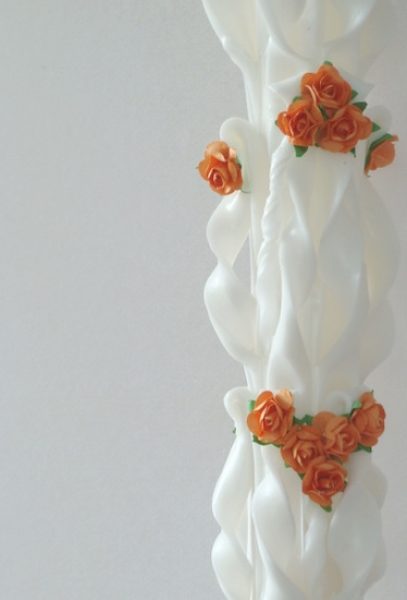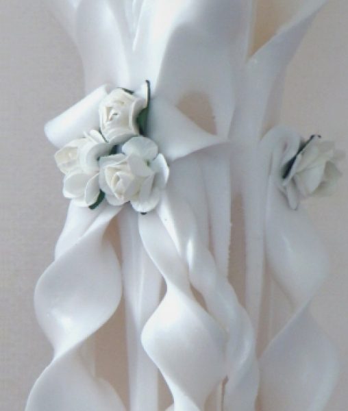 Lumanare alba sculptata la ambele capete, care nu necesita aranjament floral.