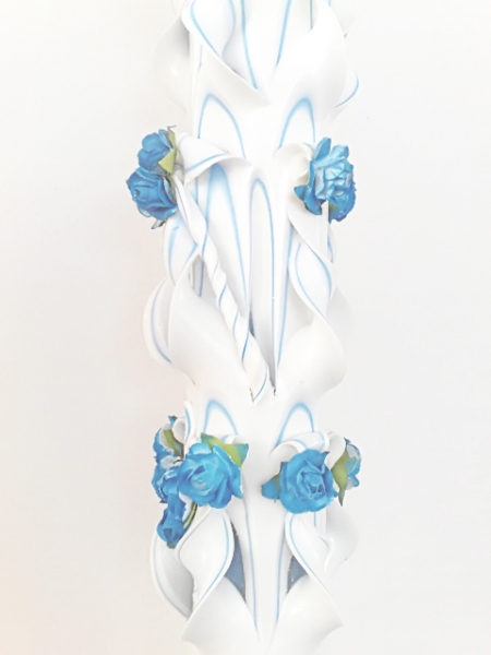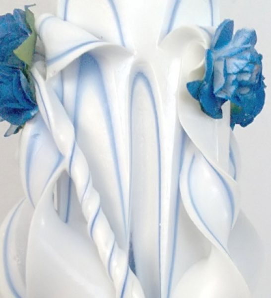 Lumanare bleu sculptata la ambele capete, care nu necesita aranjament floral.