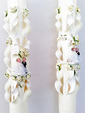 Lumanare crem sculptata la ambele capete, care nu necesita aranjament floral.