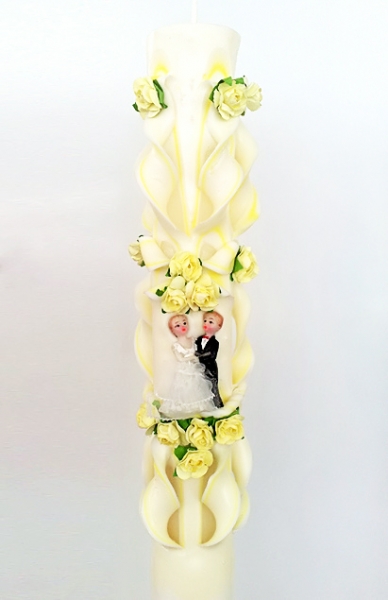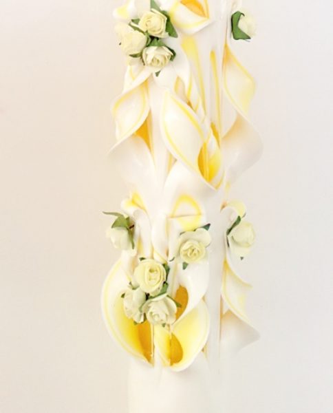 Lumanare galbena sculptata la ambele capete, care nu necesita aranjament floral.