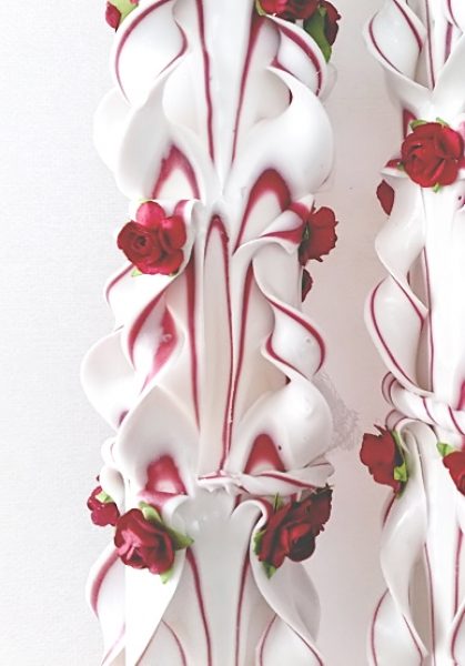 Lumanare grena sculptata la ambele capete, care nu necesita aranjament floral.