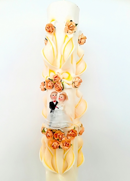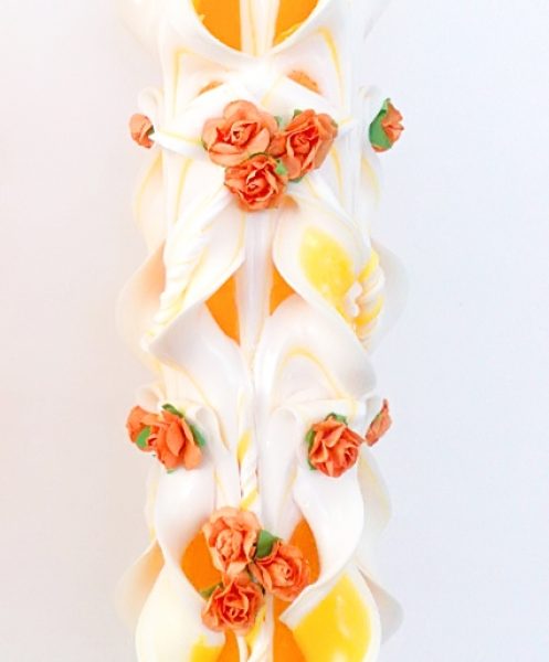 Lumanare portocalie sculptata la ambele capete, care nu necesita aranjament floral.