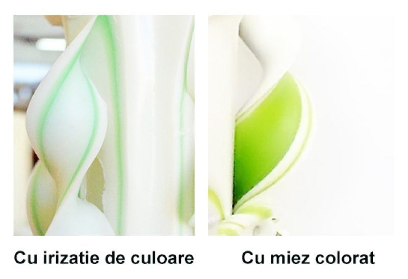 Cu miez colorat – culoarea este aplicata in centrul sculpturii ornamentale, ca in fotografia de prezentare