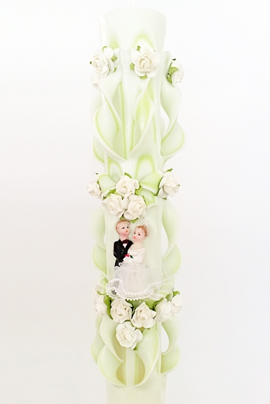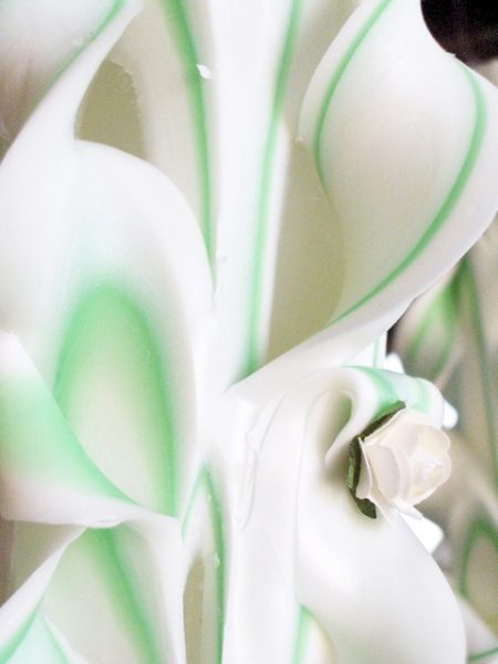 Lumanare verde fistic sculptata la ambele capete, care nu necesita aranjament floral.
