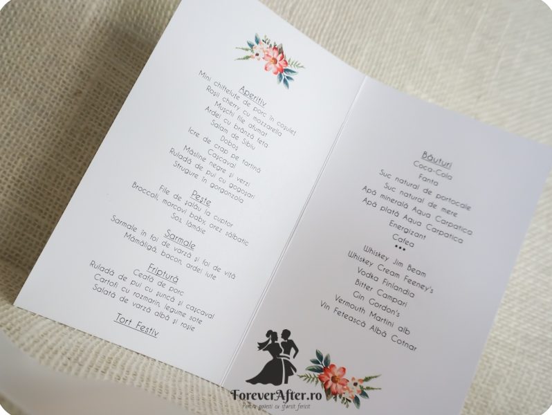 *Meniul se poate personaliza in functie de tematica si cromatica nuntii.