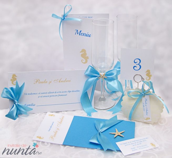 Se pot realiza in aceeasi gama asortata nuntii voastre si alte accesorii: carduri de confirmare, place-card-uri / plicuri de bani, marturii, meniuri si numere de masa, lista de asezare a invitatilor, etc.