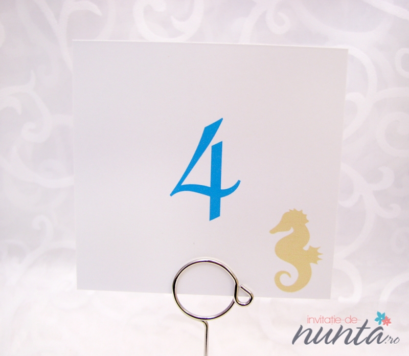 Numar de masa din carton alb, mat, ce are ilustrat un calut de mare in partea dreapta jos. Pe acest card se pot imprima numerele meselor, folosind orice tip de text si orice culoare doriti.