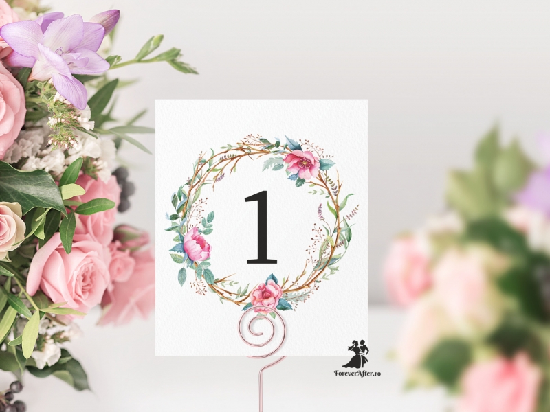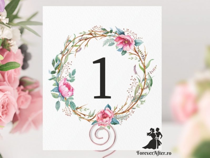 Numarul de masa poate fi personalizat in functie de tematica sau cromatica nuntii.