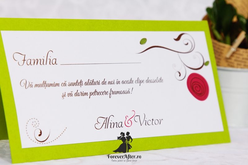 Se pot realiza in aceeasi gama asortata nuntii voastre si alte accesorii: carduri de confirmare, place-card-uri / plicuri de bani, marturii, meniuri si numere de masa, lista de asezare a invitatilor, etc.